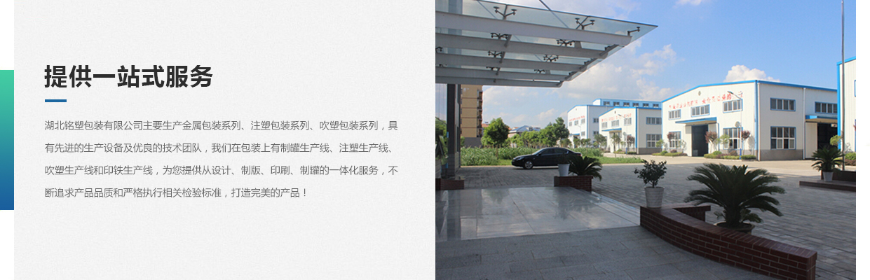 湖北銘塑包裝有限公司一家集研發(fā)、生產(chǎn)、銷售于一體的較優(yōu)秀民營(yíng)企業(yè),技術(shù)力量雄厚,產(chǎn)品質(zhì)量可靠。位于交通暢順,百業(yè)興旺、經(jīng)濟(jì)富裕、政策開放的孝感開發(fā)區(qū)域。我們企業(yè)的營(yíng)銷戰(zhàn)略是以建筑為土壤,以產(chǎn)品為種子,以質(zhì)量為肥料,讓綠色鋪滿全球。憑借多年來的行業(yè)經(jīng)驗(yàn),公司不斷進(jìn)行創(chuàng)新和研發(fā),為市場(chǎng)提供更廣泛的產(chǎn)品應(yīng)用領(lǐng)域和更好環(huán)保節(jié)能產(chǎn)品,為國(guó)家能源環(huán)保戰(zhàn)略和可持續(xù)發(fā)展戰(zhàn)略作出應(yīng)有的貢獻(xiàn)。 湖北銘塑包裝有限公司主要生產(chǎn)金屬包裝系列、注塑包裝系列、吹塑包裝系列,具有先進(jìn)的生產(chǎn)設(shè)備及優(yōu)良的技術(shù)團(tuán)隊(duì),我們?cè)诎b上有制罐生產(chǎn)線、注塑生產(chǎn)線、吹塑生產(chǎn)線和印鐵生產(chǎn)線,為您提供從設(shè)計(jì)、制版、印刷、制罐的一體化服務(wù),不斷追求產(chǎn)品品質(zhì)和嚴(yán)格執(zhí)行相關(guān)檢驗(yàn)標(biāo)準(zhǔn),打造更好的產(chǎn)品!